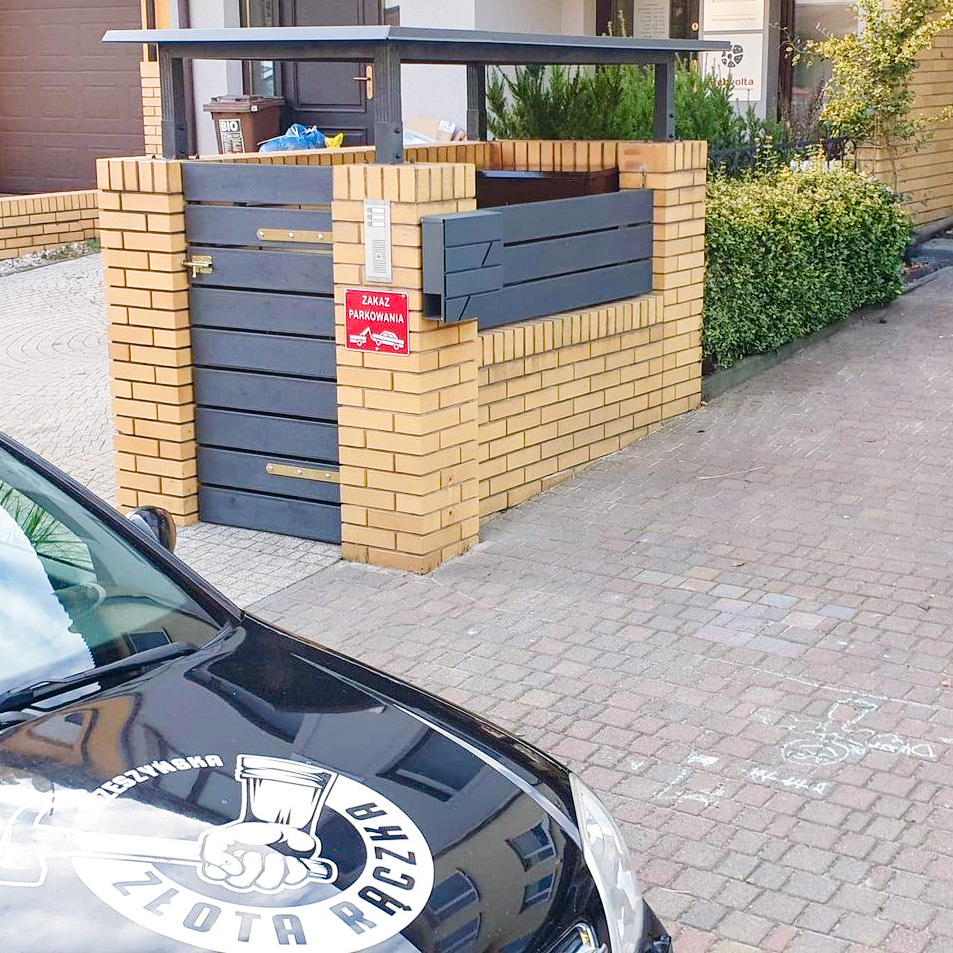 “Śmietniki moje i sąsiadki, zaraz przy naszym domofonie – zmora! Artur i Grzegorz podeszli do tematu bardzo pomysłowo. Zbudowali solidne drzwi z drewnianej deski, zamontowali elegancki blaszany daszek, przy okazji odmalowali skrzynkę elektryczną, znajdującą się we wnęce śmietnikowej. Nie mogę się napatrzeć na te nasze śmietniki :D, Polecam!”